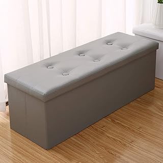 Foldable Ottoman storage bench in white leather extra bench.
