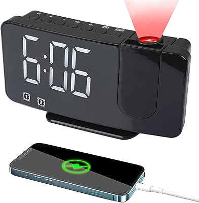 Digital alarm clock for bedroom with rotary projector at 180 degrees and fm